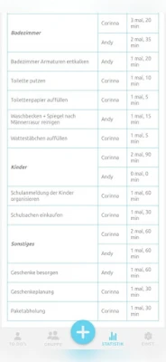 Få en dypere innsikt i din egen og familiens innsats med appens detaljerte ytelsesoversikt og statistikk. Denne funksjonen visualiserer alle fullførte oppgaver, selv de minste bidragene som ofte blir oversett, og løfter dem frem i lyset. Aldri mer diskusjoner om arbeidsfordeling; appen gir deg et faktabasert grunnlag for å fordele ansvar rettferdig. Etter kun få måneder vil du ha en krystallklar oversikt over alle fullførte oppgaver og tidsbruk, noe som gir et objektivt fundament for en balansert og harmonisk fordeling av husarbeid og andre plikter.