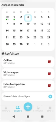 Inkluder hele familien i planleggingen med appens innovative funksjoner for oppgavefordeling. Appen tilbyr en egen barnemodus som sikrer at de yngste kun ser sine tildelte gjøremål, trygt adskilt fra statistikk og andre sensitive data. Tildel enkelt oppgaver til andre familiemedlemmer eller kolleger; de vil umiddelbart motta en varsling og oppgaven dukker automatisk opp i deres personlige huskeliste. I tillegg forenkler appen planleggingen av faste rutiner med smarte løsninger for repeterende oppgaver, noe som sparer verdifull tid og sikrer at ingenting blir glemt.