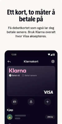 Opplev en smartere og mer fleksibel måte å handle på med Klarna-appen, din ultimate følgesvenn for sømløse kjøp. Fra den minste hverdagsgjenstand til større investeringer, gir Klarna deg full kontroll over økonomien. Velg selv hvordan du ønsker å betale: betal umiddelbart, utsett betalingen i opptil 30 dager, del opp kjøpet i tre rentefrie avdrag over 60 dager, eller benytt deg av våre finansieringsalternativer. Med Klarna er handleopplevelsen alltid tilpasset dine behov, med 0 % årlig rente på våre populære faktura- og delbetalingsløsninger.