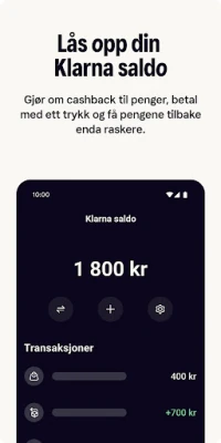 Ikke bare forenkler Klarna-appen betalingen, den beriker også hele din shoppingreise. Tjen opptil 10 % cashback på tusenvis av kjøp direkte i appen, og gjør om bonuspoengene til kreditt på din Klarna-saldo. Denne smarte funksjonen, i kombinasjon med evnen til å sammenligne priser på tvers av utallige butikker, sikrer at du alltid handler både smart og økonomisk. Utvid din fleksibilitet ytterligere med Klarna-kortet, som lar deg benytte Klarnas betalingsmuligheter overalt hvor Visa aksepteres, uten at en søknad påvirker din kredittverdighet. Med Klarna-saldo kan du også enkelt sette inn penger og få umiddelbare tilbakebetalinger.