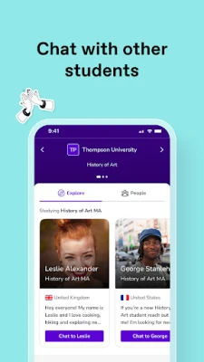 Ved å engasjere deg i chat-samtaler, får du direkte tilgang til autentiske erfaringer og perspektiver. Enten du lurer på studielivet, campusfasiliteter, eller spesifikke studieretninger, kan du stille spørsmålene dine og få ærlige svar. Har du mottatt en invitasjon til et spesifikt fellesskap? Følg instruksjonene for å opprette din konto og bli en del av en eksklusiv gruppe med medstudenter, klar til å dele tanker og veiledning. Her handler det om å bygge forbindelser og finne klarhet sammen.